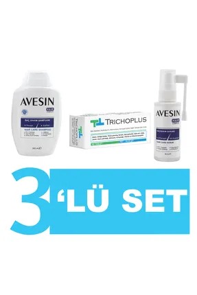 PAKET İÇERİSİNDE 1 ADET AVESİN ŞAMPUAN 1 ADET AVESİN SPREY1 ADET TRICHOPLUS